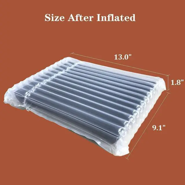 TransparentSize: Holds 14 Inch Laptops. FEATURESThis inflatable laptop protective bag is light and strong - it weighs less than a pound, but can hold more than 180 pounds! Specially designed air columns protect laptops and reduce damage caused by falls, with 360 degree protection for each and every accident. It is easy to use, Easily inflated with any hand pump, providing quick and unmatched protection while shipping or traveling. It's the ideal laptop mailer which can easily compatible with your laptop shipping box for travelling or shipping. WHATS INCLUDEDInflatable Sleeve x 50Hand Pump x1