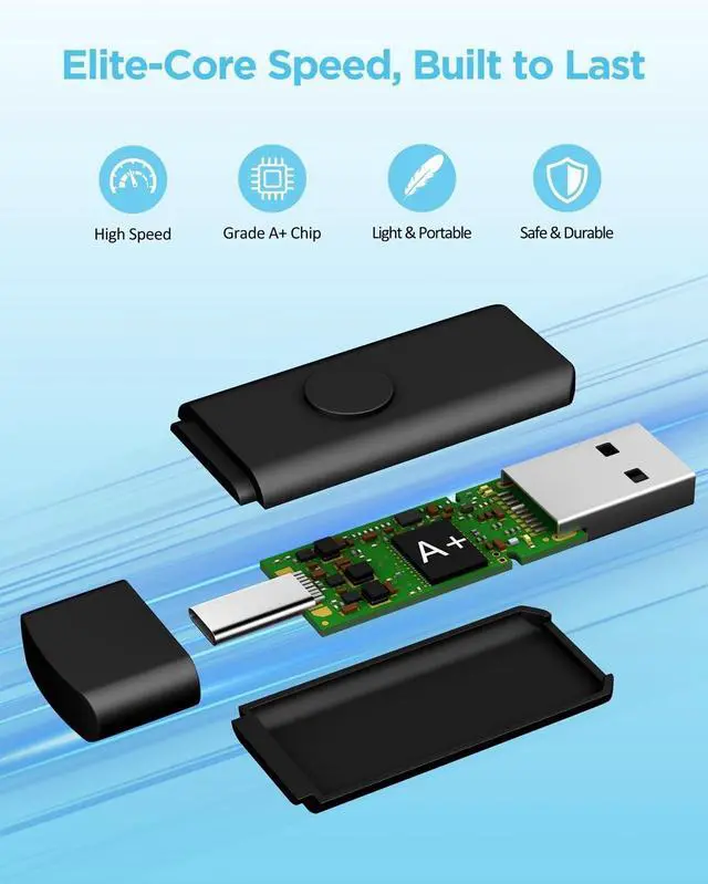 No drivers required: The flash drive just plugs in and starts storing. Works instantly with USB-A and USB-C devices; transfer speeds may vary depending on the device, but you'll always get the fastest speed it's capable of ^^
