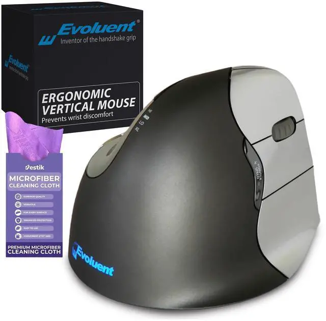 The Evoluent (VM4R) ergonomic mouse reduces hand and wrist strain, making it an ideal option for those who spend long hours on their computers. This laptop mouse features a unique vertical design that keeps your hand and wrist in a more natural position, reducing the risk of repetitive stress injuries. ^^ This vertical USB mouse provides a stable and reliable connection and is a ready-to-use computer mouse that eliminates the need for batteries or charging. ^^ The Evoluent vertical mouse 4 offers precise cursor control and customizable buttons that perform specific actions. It's a good option for gamers and professional users.