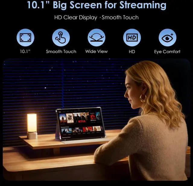 The crisp HD screen delivers vibrant colors, sharp contrasts, and wide viewing angles, while the blue light filter and eye-care design reduce strain during extended viewing. Dual stereo speakers, a 3.5 mm audio jack, and USB support for lossless audio formats ensure an exceptional audiovisual experience for movies, shows, and music. ^^ [Huge Storage, GMS Certified & Quick Connection] Enjoy massive storage with this Android tablet, featuring 30GB RAM (8GB physical + 22GB virtual) and 128 GB internal storage, expandable up to 1TB with a TF/microSD card.
