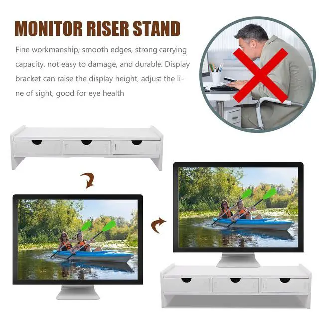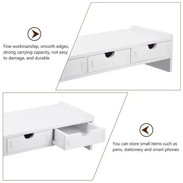 Storage Drawers: Equipped with three built-in drawers, this monitor riser holder provides convenient storage for pens, stationery, smartphones, and other small desktop items to keep your workspace organized ^^ Sturdy and