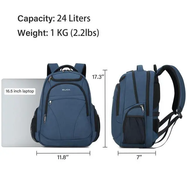 Laptop Carry On Backpack: MILADA travel backpack for women men fits 16.5 Inch Laptop.
