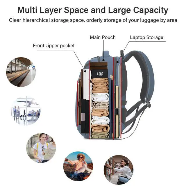 Widely Used: The back strap can be wrapped around the luggage, relieving stress and freeing your hands during travel. Business backpack can convert for your needs in any suication(business backpack /duffle bag/travel bag). Carry on luggage backpack is perfect for weekender, travel, daily use