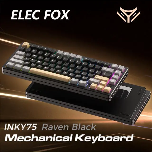 ELECFOX MK INKY75 Mechanical Keyboard with Full Aluminum Wireless Mechanical Gaming Keyboard, 75% Layout Mechanical Keyboard BT/2.4G/USB-C,Hot Swappable, Creamy Sounding, RGB/PP/4000mAh(Raven Black)