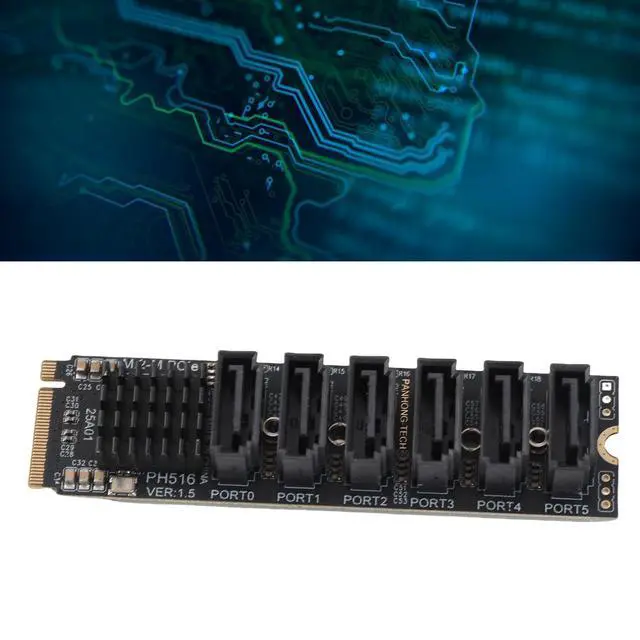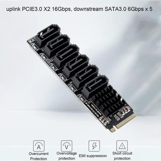 Adapter Card: M. 2 to SATA 3.0 expansion card uplink PCIE 3.0 X2 16Gbps, downstream SATA 3.0 6Gbps x 5.