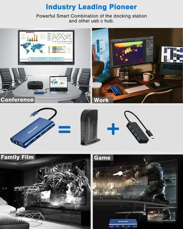 Multi-Display USB C Docking Station: Hiearcool intelligent USB C Hub incorporates a triple display, lightweight, portable and powerful with multi-ports to achieve multi-display (mirror mode/extend mode/video wall mode) ^^