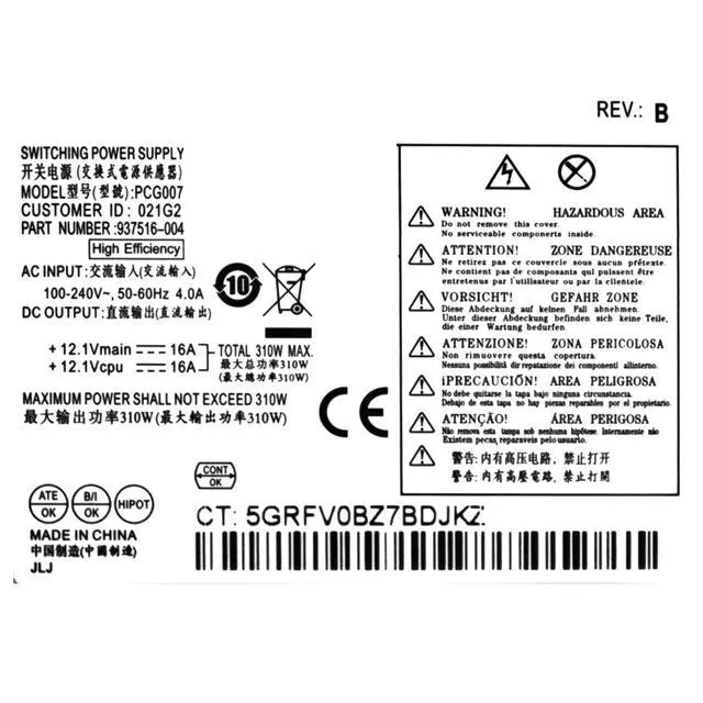 AC INPUT: 100-240V~, 50-60Hz 4.0A 1, the picture is taken in kind, 2, please carefully confirm the power supply and part number and model before purchase. 3. Each power supply is tested before shipment4, If you have any questions, please feel free to contact us, we will be happy to help you.
