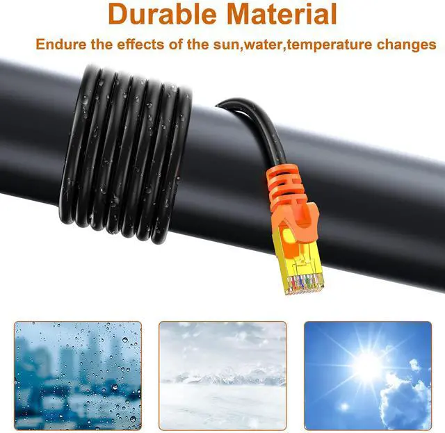 Weatherproof UV Resistant: Buliding with high quality UV-resistant PVC jacket, the outdoor rated Cat7 Ethernet cable is anti-aging. It can withstand direct sunlight and extreme cold & humid & hot weather yet still working efficiently. Premium design with great quality ^^