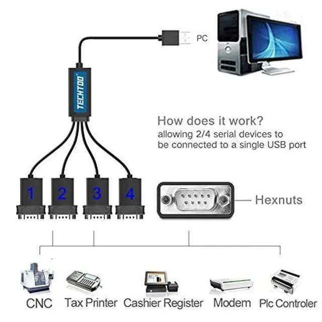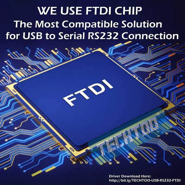 TECHTOO, known as a worldwide registered brand in North America, Europe and Asia. DescriptionTECHTOO USB to RS232 DB9 Serial MALE Converter Adapter Cable is designed to connect serial devices such as PCs with RS-232 ports, Bluetooth serial adapters, PDAs, GPS receivers, routers, firewalls, modems, printers, cash registers, embedded character displays, scan tools, sonar units, embedded boards, etc.