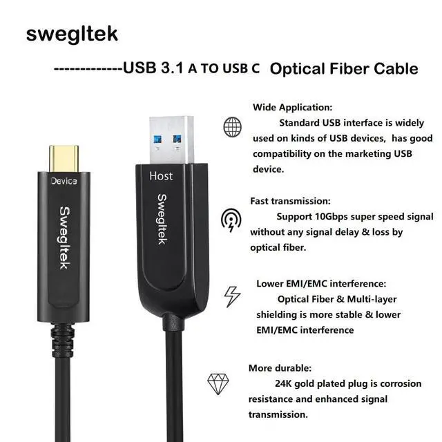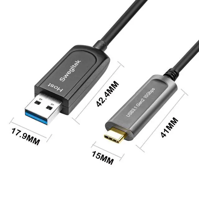 • Ultra-Fast Data Transfer with Zero Compromise: Designed to support USB 3.1 Gen 2, the swegltek fiber optic USB A to USB C cable delivers an impressive 10Gbps data transfer speed, ensuring quick and efficient file transfers. Its advanced optical design allows seamless signal transmission over distances of up to 50 meters without any data loss, making it perfect for long-distance setups.
