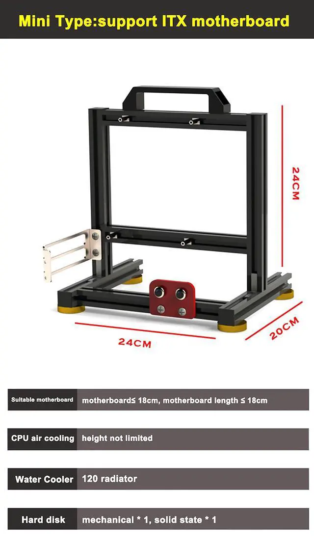 38*35*4cmNote: 1. It's only a open case, not include other products. The computer case frame needs to be installed by yourself. 2. There might be a little error of the size for manual measurement. 3. The color deviation might differ due to different monitor settings, please kindly understand. 4. The PC case frame supports horizontal installation of graphics cards by default. If need to install graphics cards vertically, you need to purchase additional extension cablesPackage