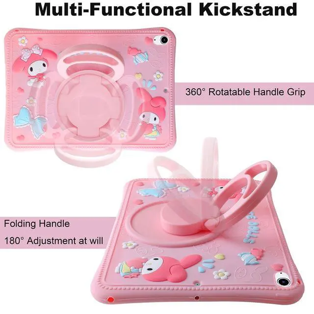 Carechoi Kids Case for Samsung Galaxy Tab A9 Plus 11 inch 2023 Model offers complete protection and functionality for your child's tablet. Specifically designed for Samsung Galaxy Tab A9 Plus 11 inch 2023 (Model: SM-X210/X216/X218), this case features precise cutouts that provide full access to all ports, cameras, buttons and speakers. The built-in 360-degree rotating kickstand allows multiple viewing angles for comfortable watching, reading, drawing and gaming. Made from premium shockproof silicone material, this case provides excellent drop protection with reinforced corners and raised edges that safeguard the screen from scratches. The non-toxic, child-safe silicone material is soft to touch and easy to clean. Includes an adjustable shoulder strap that can be detached when not in use. Perfect for carrying the tablet around the house, in the car, or during travel. The strap can be adjusted to suitable length for crossbody wear or attached to car headrests for backseat entertainment. With its cute cartoon design and pink color, this case makes tablet use more enjoyable for children. The smooth surface resists fingerprints and stains, maintaining a clean appearance. Ideal for girls who want to personalize their devices while keeping them protected.