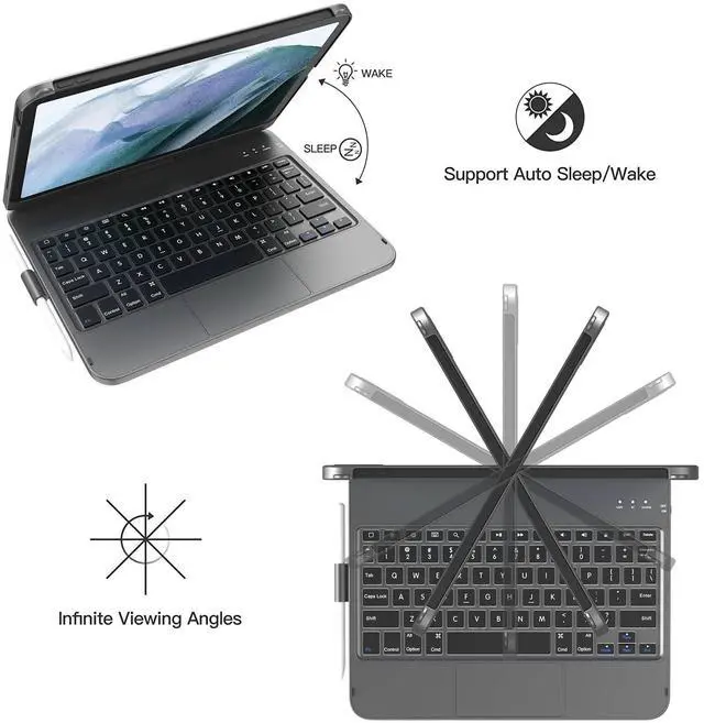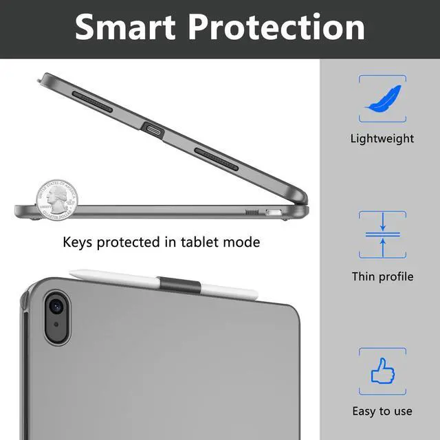 Note: Not for iPad Air 11-inch (M3/M2, 2025/2024) (A3267/A3270/A2902/A2903/A2904) and iPad Pro 11-inch (1-4th Gen), iPad Pro 11-inch M4/M5 ^^ Various Viewing Angles With new and unique design, layered appearance and more convenient to use, allows 360 rotation and 180 flip. It provide multiple viewing angles makes sure to meet your different visual needs and easy to flip the iPad over, change your iPad to small laptop in seconds, a great work partner to share your work presentation. Whether you are typing, viewing, using FaceTime, or reading, our keyboard offers you limitless features and capabilities for your enjoyment ^^ Multi-Touch Trackpad for ipad 10th Generation Integrated multi-touch trackpad with plentiful trackpad gestures, you can turn your tablet into a highly performant and easy to use laptop! Like swipe and scroll to navigate even faster, that opens up new ways to work with your ipad. Delivering a comfortable user experience while allowing you to click and swipe through content effortlessly. There is a pencil holder to hold your Apple Pencil, ready to use ^^ Smart Protection Auto sleep and wake function protects your iPad battery life.