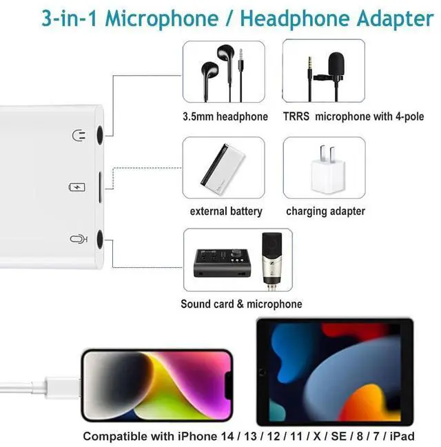 Sound Card (Microphone) & Headphone Adapter is perfect for quick and easy recording on iPhone/iPad. This Sound Card (Microphone & Headphone) Adapter is ideal for recording singing, instrument performance, audio book; on-line meeting through Skype, Zoom, FaceTime or livestreaming on Facebook, Instagram, TikTok etc.