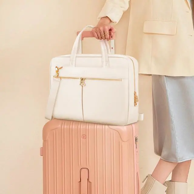 Internal dimensions: 15.5" x 11.5" x 3.5". Crafted from water-repellent polyester, this laptop bag ensures reliable protection against water and moisture. Its lightweight, slim, and soft design enhances safeguarding for your laptop while maintaining flexibility. Complemented by a detachable shoulder strap for versatile portability, this laptop bag is ideal for daily commutes or travel, combining practicality with modern aesthetics.