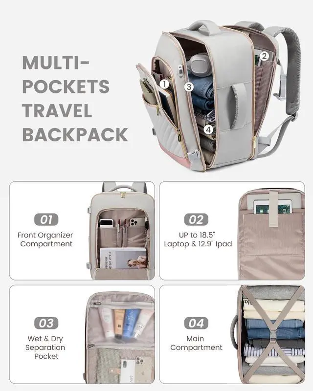 ^^ Long-Lasting & Comfort: Our travel backpack is made of tear-proof, waterproof and abrasion-resistant materials, this carry-on backpack has thickened soft and comfortable cotton padding on the back and shoulder straps to withstand the rigors of travel and provide comfort during long journeys comfortability. ^^ Ideal Gift for