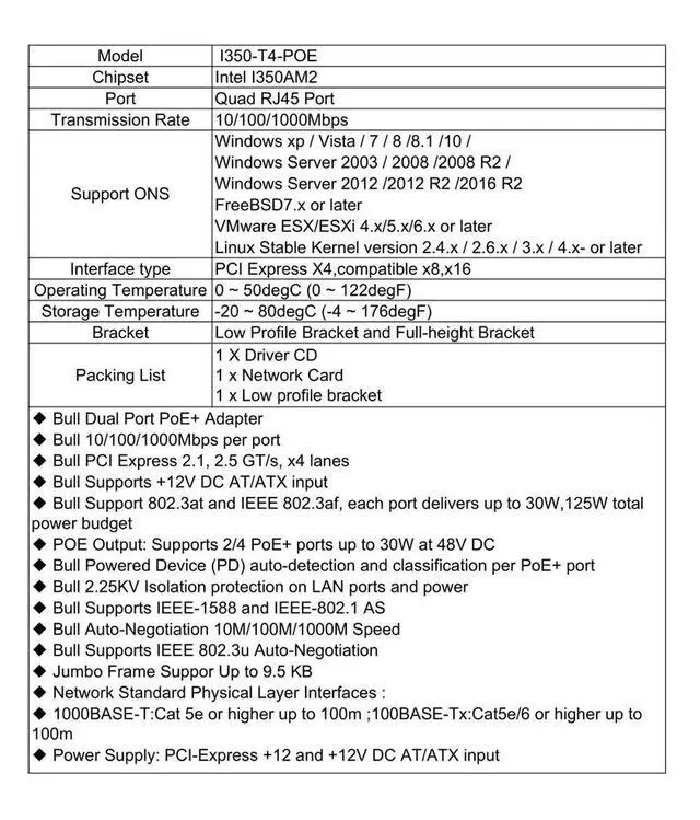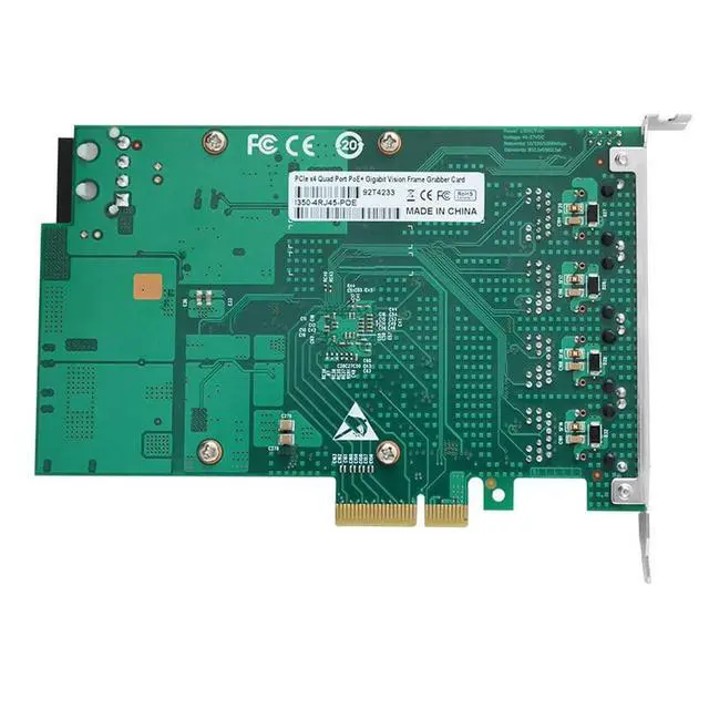 is a kind of high-performance image capture network video recorder card. The cards supports 4 independent 10/100/1000BaseT (X) 802.3 af & 802.3 at (PoE) compliant Ethernet ports, With 12 VDC AT/ATX power input. It can boost then provides up to 25.5 watts at 48 VDC power to maximum 4 PoE ports on each module. It allows power to be supplied to connected devices, such as PoE-based Gigabit cameras in machine vision inspection systems, without the need to use separate PoE injectors for those applications.