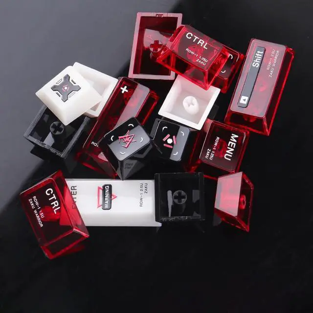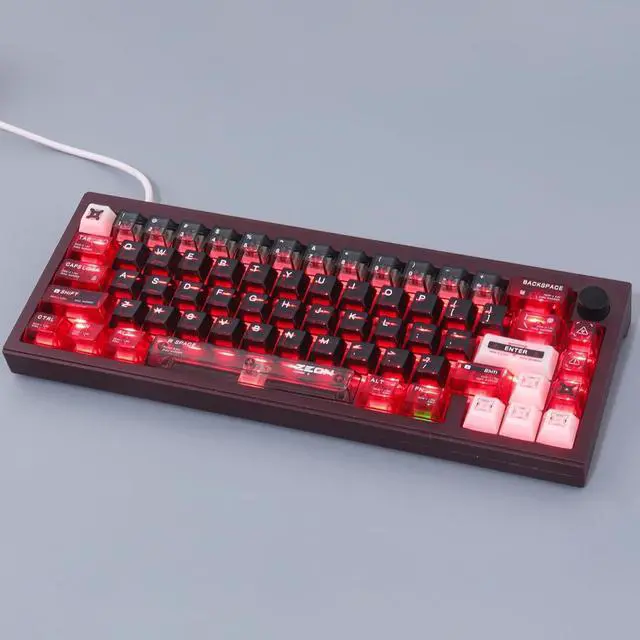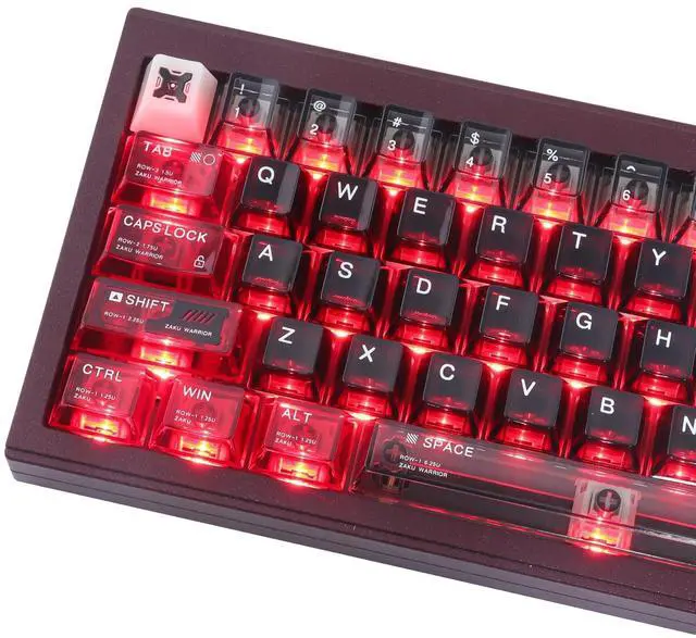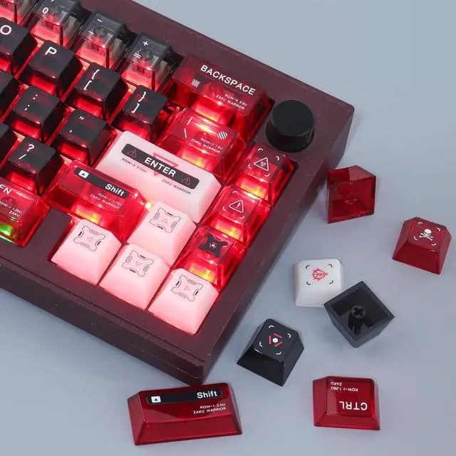 Inspired by Char Aznables iconic MS-06S Zaku II, this set features a striking crimson base with black and metallic accents. The keycaps include custom Zeon insignias, commander fin motifs, and battle-worn detailing for an aggressive mecha aesthetic. Made from durable PBT, it offers sharp legends and MX-switch compatibility. Perfect for fans of the Red Comet! ^^ Vivid RGB