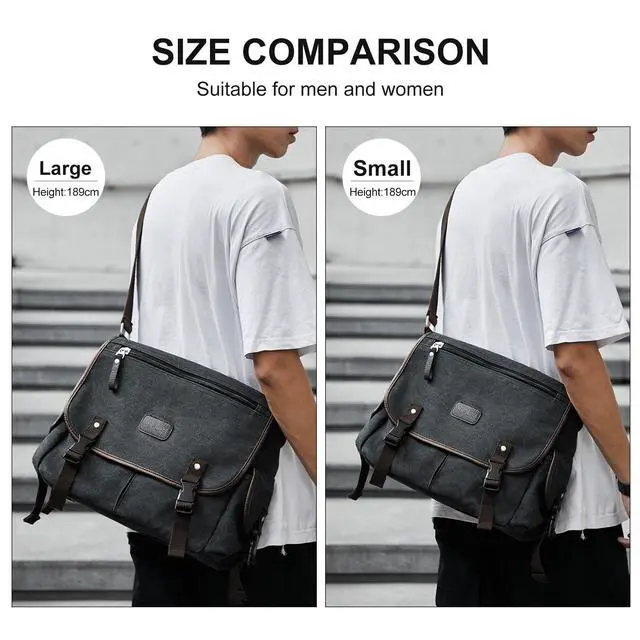 COMFORTABLE AND ADJUSTABLE SHOULDER STRAP: You can adjust the length of the shoulder strap to the most suitable length at any time with the metal adjustment buckle. Relieve your fatigue and reduce the pressure on your shoulder during use. This classic messenger bag for men and women can be used for work, party, commuting, etc.