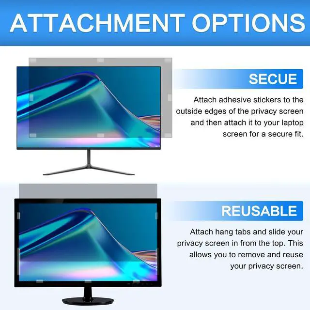 1. 21.5 inch Computer Privacy Screen Dimensions - 21.5 inch computer privacy screen 16:9 Aspect Ratio, Width: 18.8 inch (477 mm), Height: 10.6 inch (268 mm), Diagonal: 21.5" ( 546.1 mm). ZOEGAA Computer Privacy Screen Filter for Compatible with HP, Dell, Samsung, Lenovo, LG, Acer, ASUS, ViewSonic, and Other Monitor Brands. Please Verify Your Computer Screen Width and Height Measurements Before Ordering. Contact us if you Have Any Questions About Dimensions. ^^ 2. Superior Privacy and Anti Glare - Computer Privacy Screen 21.5 Inch, Our Advanced Multi-layered Film Filter Blacks out your Screen When Viewing From the Side, While Maintaining a Crystal Clear Screen Straight-on. It also Protects Your Eyes From Harmful Glare, UV, and Blue Light, lets you Rest Easier at the end of the Workday, and Rest Easier at Night. ^^ 3. Perfect for Travel and Open Workspaces - 21.5 inch Computer Privacy Screen is the ideal solution for healthcare providers, mobile workers, commuters, students, and business travelers. Now you can stay compliant and safeguard sensitive corporate information while working in airplanes, subways, airports, and public areas. ^^ 4. Install Options-There are two Methods of Installation for Your Computer Privacy Filter. Option 1 Includes High-Quality Adhesive Strips That Can Be Placed on the Outer Edges of Your Privacy Filter, and Simply Attach to Your Laptop; Option 2 Includes Slide Mount Tabs, That Attach Your Bezel on Your Laptop, Allowing you to Easily Remove Your Privacy Filter from Your Laptop Screen When Needed.
