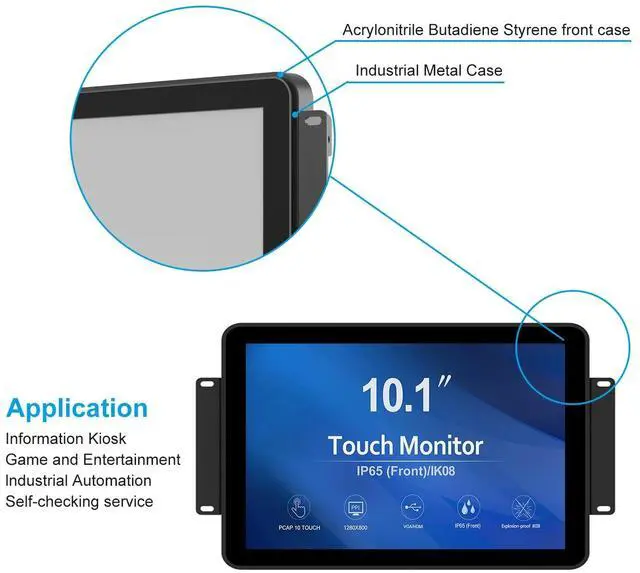 TOUCH READY -GreenTouch touch solution adopts the latest projected capacitive solution with (G+G) 10-point touch, it delivers great optical clarity and touch durability. 3mm thickness tempered cover glass provide front IK08 vandal-proof degree. ^^ FEATUREED ELMENTS -The touch screen is sealed to prevent the bad influence from dirt, dust and liquid, can meet the front IP65 water-resistant requirement. ^^ RICH INTERFACES - Coming with HDMI, VGA, DVI and Audio interfaces to meet different needs of various professional display application. ^^ COMMERCIAL GRADE - The GreenTouch open frame touchscreen monitor delivers the quality and reliability GreenTouch is known for.