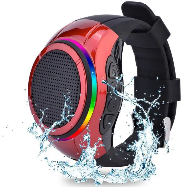 Frewico X10 Wearable Bluetooth Speaker Watch with RGB Lights, IP45 Waterproof Wrist Speaker, TF Card MP3 Player, Remote Selfie, TWS Stereo, Mic for Cycling, Running(Red)