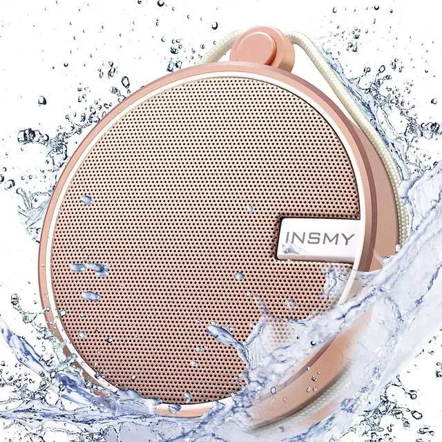 IP67 WATERPROOF EVEN FULLY SUBMERSIBLECan be fully immersed up to 1 meter for about 30 minutes underwater. Featuring shock-absorbent materials, C12 shockproof portable travel speaker is primed for every type of weather and terrain, hiking, camping, running, and more. Perfect for Kayaking, boating, paddle boarding, and fishing. No worries about weather and outdoor condition, making this shower Bluetooth speaker the perfect companion for the pool beach trail, or shower. ^^ MORE BASS LESS SPACE BIG SOUND This INSMY wireless speaker is built with an active deliver and extra passive radiator in this compact small size, delivering immersive and stereophonic audio for you from the beach to the bathroom.