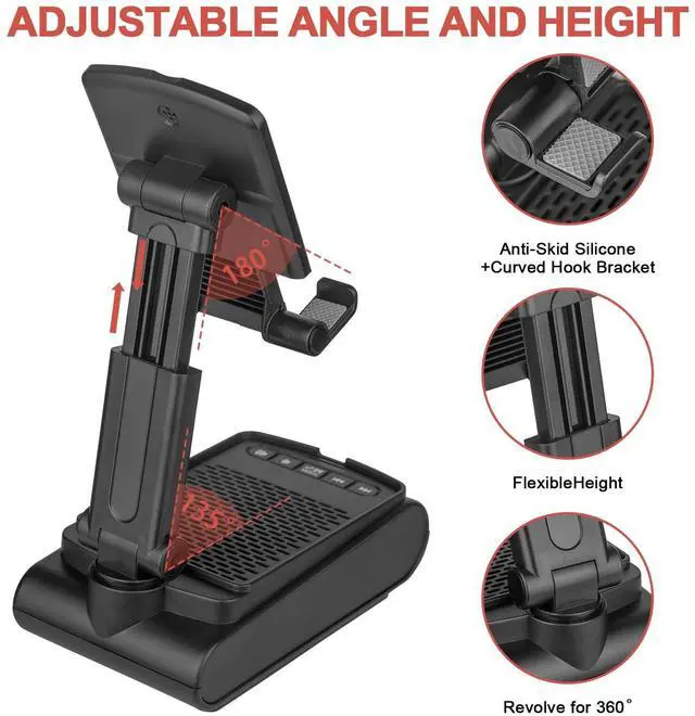 Design: BLUETOOTH SPEAKER and the design of the mobile PHONE HOLDER makes it more convenient for you to use. Bluetooth 5.0 speaker cell phone holder.