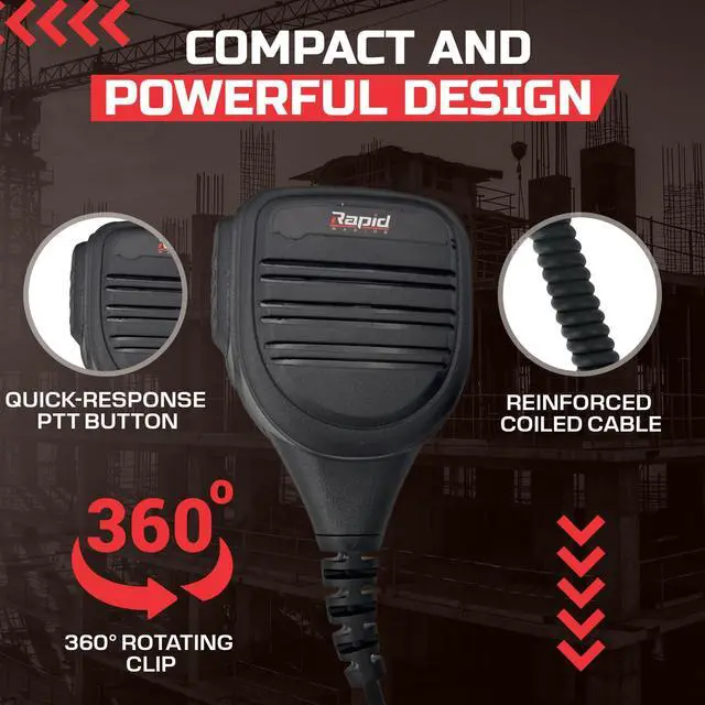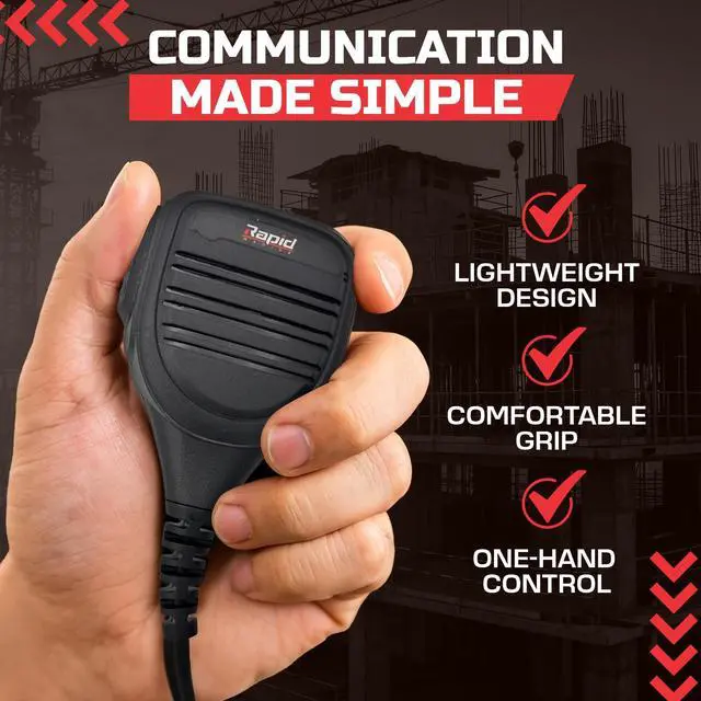 Take your Rapid Radios experience to the next level with the PTT Hand Mic with Clip a compact, clip-on microphone engineered for serious performance and discretion. From the moment you dock it, this handheld mic delivers premium, crystal-clear audiono muffled voices or muffling issuesmaking communication seamless whether you're off-roading, on duty, or in an emergency scenario. With a convenient clip, you can keep the mic attached to your clothing or gear for quick access. Its no wonder users describe it as a great convenient addition and so handy in real-world use.