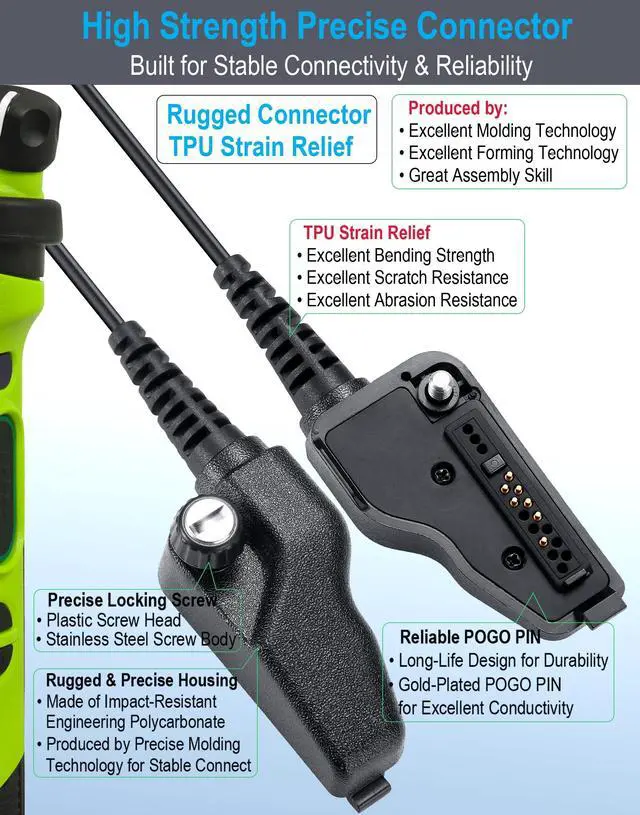 Connector and Mic/PTT: approx. 32 inch-Cable Length Between Mic/PTT and
