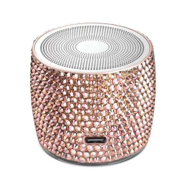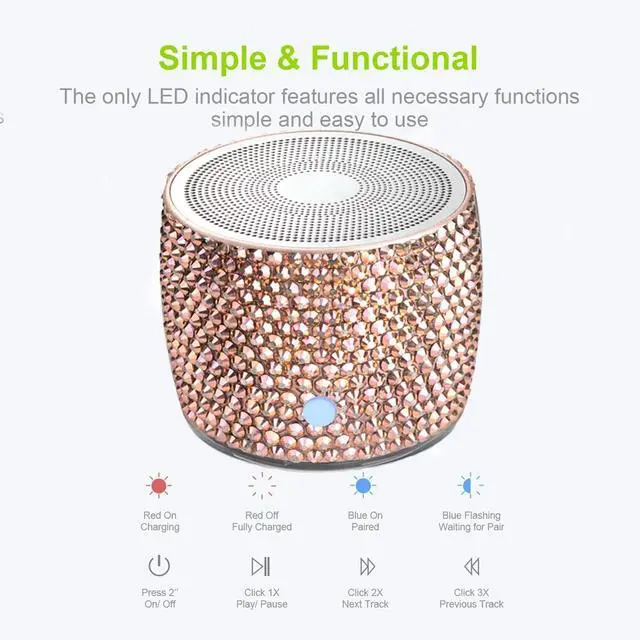 Unique Stunning Design - Hand laid LUXURY AUSTRIAN rhinestone crystals adds sparkle and bling to your space, a bedazzled unique gift. It is not only a high-quality mini wireless speaker, but also a desktop artwork. Also, the various color option and the compact size make it the best choice for home, office or travelling use. ^^ Amazing Bass Loud Sound - The wireless speaker delivers 3W stereo sound, releasing crystal clear sound with bass and room-filling loudness through a high-performance driver and a passive subwoofer. Small, but such powerful Bluetooth speakers.
