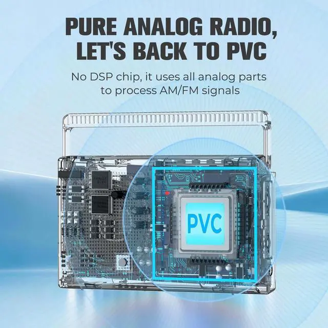 Last of Its Kind Vintage PVC ChipThis is one of the last analog radios in the US still using the old-school PVC chip, a piece of history thats harder and harder to find these days. Its a tribute to the past while still delivering great reception on FM 88108 MHz and AM 5301710 KHz, thanks to the telescopic antenna. If youre nostalgic for that vintage sound, this rare analog radio is the one that takes you back.
