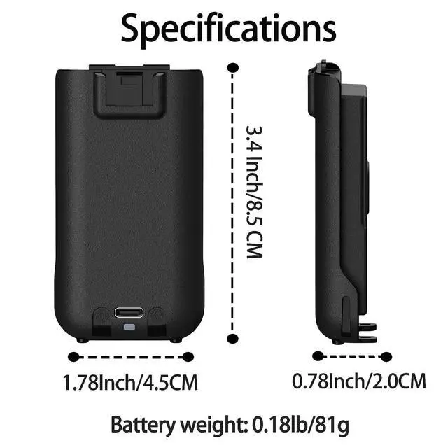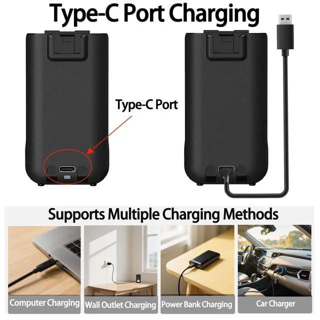 [Compatible Models] For UV-5R Mini, UV5R, 5R Mini walkie talkie. Please double-check compatibility before ordering ^^ [High Capacity] USB-C 1600mAh large battery extends usage time, ideal for continuous operation during activities and events ^^ [Comprehensive Safety] Multi-protection system including overload, leakage, overcharge/over-discharge, overheating, and short-circuit protection ^^ [Charging Status Indicator] Red light indicates charging in progress, green light signals full charge for intuitive power management ^^ [Charging Status Indicator] Red light indicates charging in progress, green light signals full charge for intuitive power management
