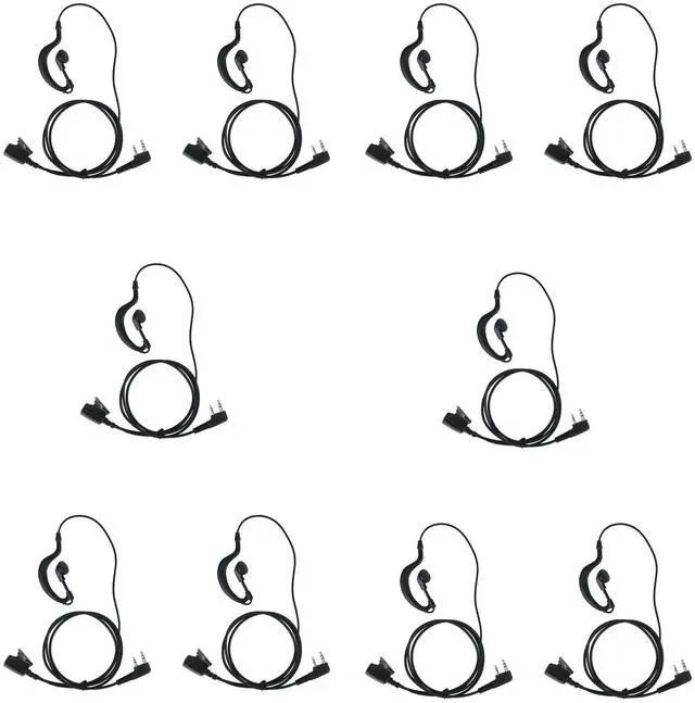 Compatible with Kenwood earpiece with G shape ear-hook, Wearing is not easy to fall off. Common to left and right ears. Soft PU material ear-hook, Suitable for long wearing, comfortable and durable ^^ 2 Wire Surveillance kit with G shape ear-hook, High Quality PU Cable, High Strength & Durability ^^ PTT (Push To Talk) button with built-in line remote microphone, easy and convenient to wear and clear sound performance without distortion ^^ Compatible with Baofeng uv-5r bf-888s bf-f8hp Kenwood tk-2202 tk-2402 tk-3402, more detail in Description ^^ Package including10packs Compatible with kenwood radio earpiece with