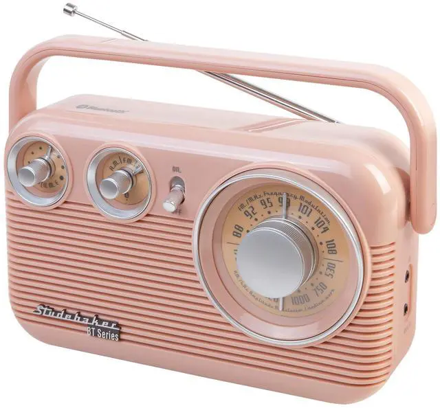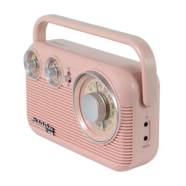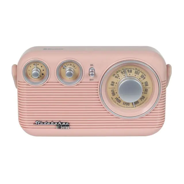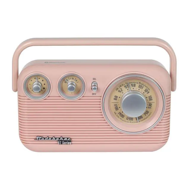 Studebaker SB2003BT Bluetooth Retro Portable AM/FM Radio with AC or Battery Operation (Rose Gold)