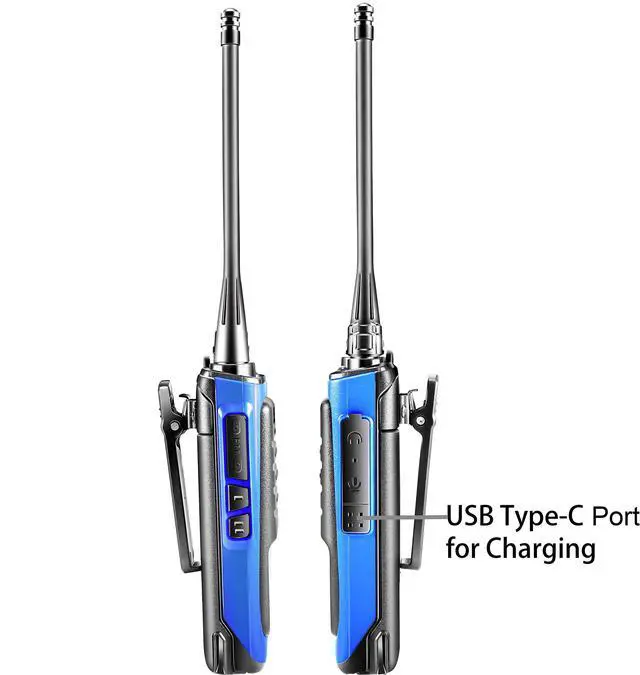 Rechargeable walkie-talkies: Save money in the long run with rechargeable walkie-talkies. No more purchasing disposable batteries that drain your wallet. Simply recharge your devices and keep them ready for action. You can charge your walkie walkies with our charging base or with the USB Type-C port on the walkie talkies. It lasts around 8 to 96 hours on a single charge depending on how much you transmit ^^