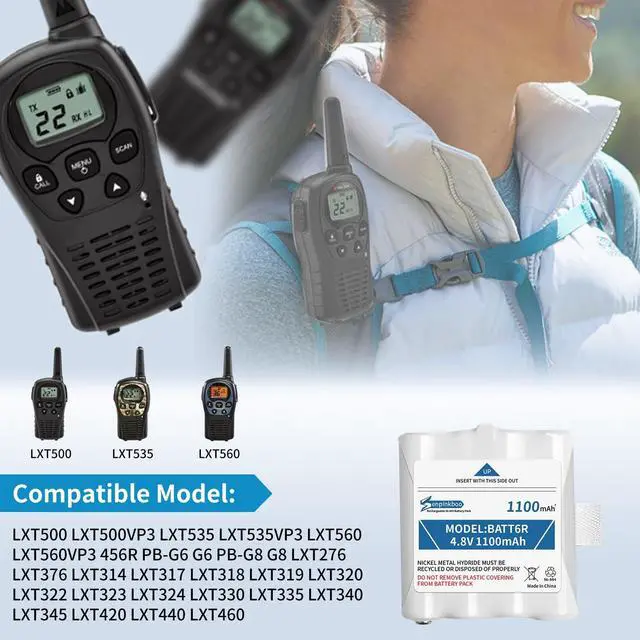 Compatible Model: This Replacement Battery model is BATT6R AVP8. Compatible with LXT500 LXT500VP3 LXT535 LXT535VP3 LXT560 LXT560VP3 456R PB-G6 G6 PB-G8 G8 LXT276 LXT376 LXT314 LXT317 LXT318 LXT319 LXT320 LXT322 LXT323 LXT324 LXT330 LXT335 LXT340 LXT345 LXT420 LXT440 LXT460 Walkie-Talkie Radios. please carefully examine your device model and old battery if it fits before purchasing. ^^ Higher Quality Grade A Premium