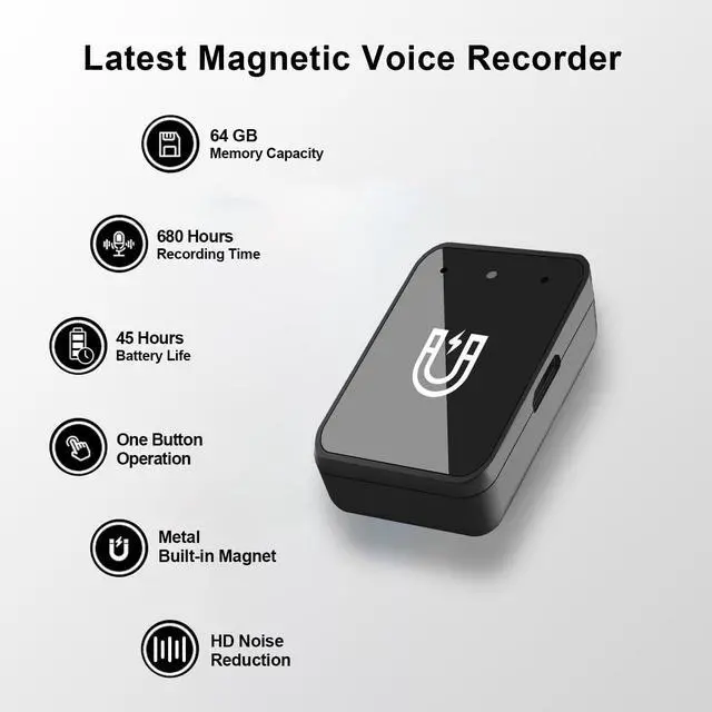 Magnetic Voice Recorder: Built-in powerful magnet on the recorder's back, which can be easily attached to metal surfaces. Portable recorder can also be used as a flash drive to store and back up files that you need to carry with you. Its user-friendly design makes it easy to use even for first-time recorder users. ^^ 64GB Storage Capacity & Long