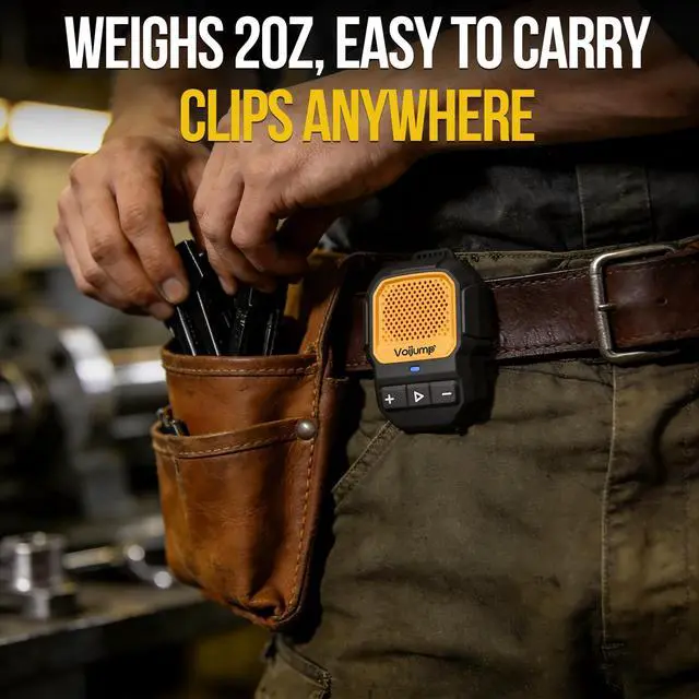 Durable: This portable Bluetooth speaker features a clip that opens easily with one hand, allowing you to securely attach it to your bag, collar or belt. Whether you're working on Jobsite, driving a forklift, hiking, cycling, or doing everyday chores, it frees your hands and provides a secure fit.
