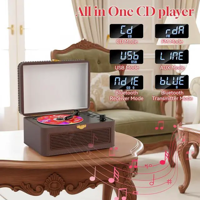Versatile Playback Modes: Gueray CD player offers a rich variety of audio playback modes, including CD mode, Bluetooth receiving and transmitting modes, FM radio mode, USB mode, AUX mode, A-B repeat mode. It is widely compatible with multiple audio formats such as CD, CD-R, CD-RM, MP3 and WMA. Whether you're a fan of classic CD records or digital music files, you can enjoy your favorite tunes effortlessly ^^ Vintage CD Player with