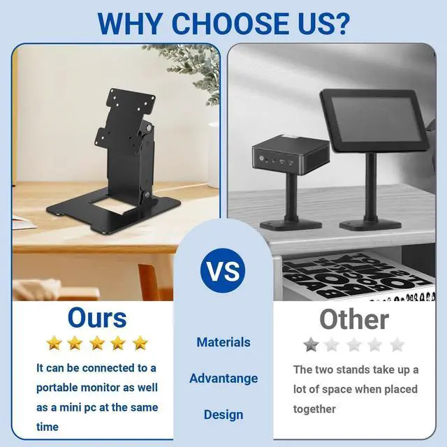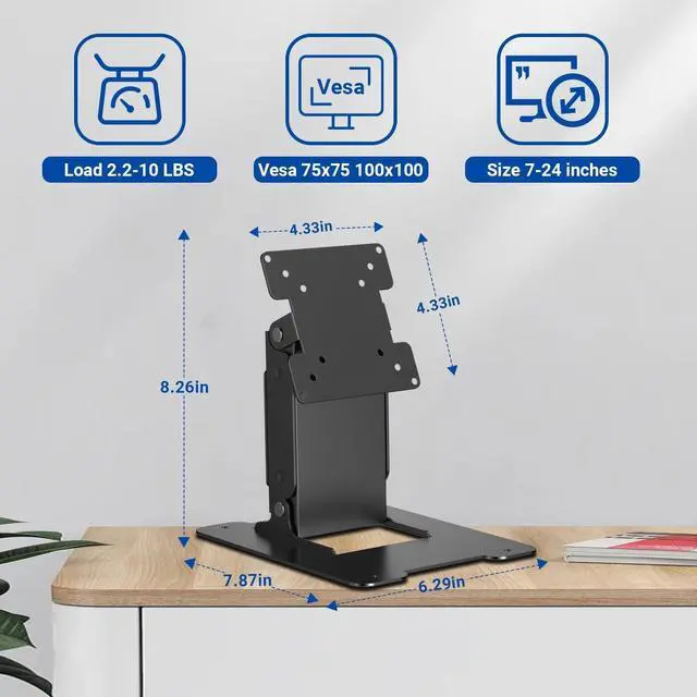 Two-sided LCD Monitor VESA Desk Stand Metal Foldable Holder ^^ Suitable For 7 to 17 inch All In One PC&LCD Monitors With VESA 75x75 100x100mm ^^ Up/Down 90 Degree Adjustable Body, 90 Degree Swivel Head Desktop LCD Mount ^^ Sturdy All-metal Construction, Fold Completely Flat ^^ 4cm Thickness When Folded, 20cm Maximum Height, Support 7KG Maximum Weight.