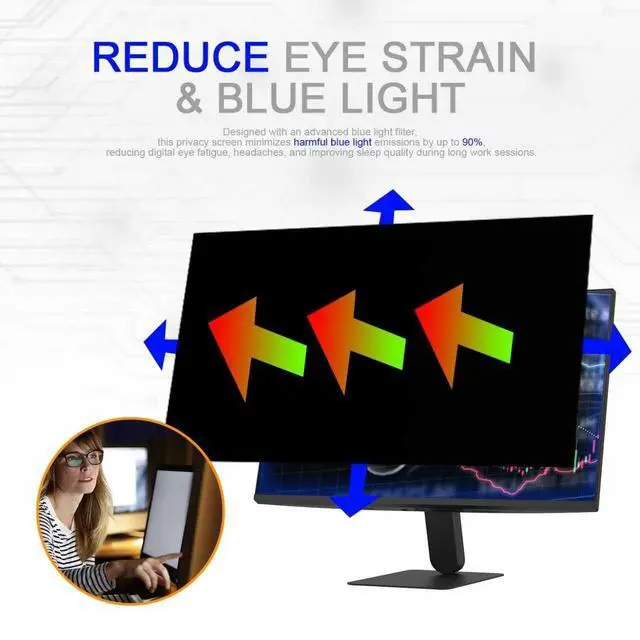 Compatible with: - **Computer Monitor 24 Inch( 16:9 Aspect Ratio, 531*299mm)** ^^ Reduce Eye Strain & Blue Light** Designed with an advanced **blue light filter**, this privacy screen minimizes harmful blue light emissions by up to **90%**, reducing digital eye fatigue, headaches, and improving sleep quality during long work sessions.
