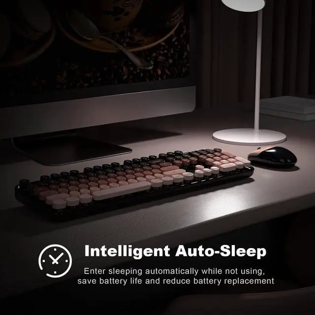 Battery Life: Both the keyboard and mouse, powered by 1 AA battery each, automatically enter sleep mode after 8-10 minutes of inactivity. This helps extend battery life to up to 18 months, depending on usage. ^^