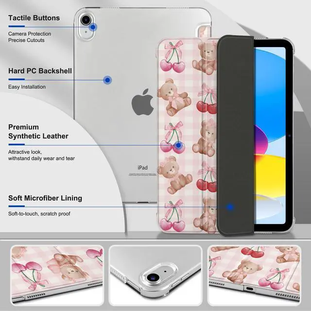 Model numbers: A2696, A2757, A2777. Not compatible with any other iPad models ^^ Auto Sleep/Wake Function -- Automatically puts your iPad to sleep when closed and wakes it up when opened, saving battery life. ^^ Trifold Stand -- Adjustable 3-fold design offers two viewing modes: one for media viewing and another for comfortable typing. ^^ Durable & Scratch-Resistant -- The case is made from high-quality PU leather and features a hard PC back, offering excellent protection against scratches and fingerprints. ^^ Transparent Hard PC Back & Soft Microfiber Interior -- The transparent, hard PC back allows you to display your logo while providing strong protection. The soft microfiber interior prevents scratches on your iPad screen and ensures safe handling.