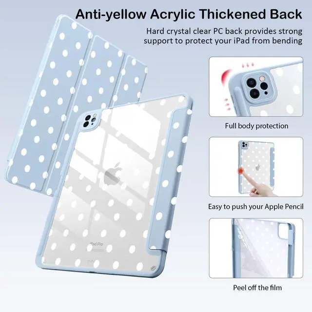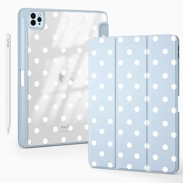 BlHMCASE Cute Kawaii Polka Dot for iPad (A16) 11th Gen Case 11 Inch 2025, for iPad 10th Gen Case 10.9 Inch 2022 with Pencil Holder, Auto Sleep/Wake, Blue Leather Clear Acrylic Back Cover