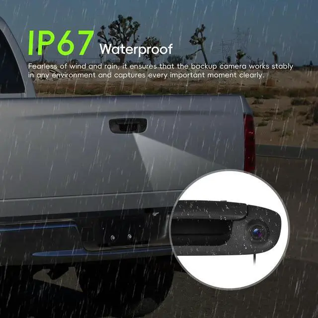 Note: This product is only fit for reinstalled car player screen not the original. If your car model is not included in the list above, please chat with our customer services for better purchase advice. Features - Compatible for 2002-2008 Dodge Ram 1500 2500 3500 aftermarket radio - 10M Video Line (AV connector) - HD 1280*720 (Mirror) (Without Guidelines) (PAL Video System) - CVBS 640*480 (Mirror) (With Guidelines) (NTSC Video System) - IP67 Waterproof - 140 wide viewing angel - IR Night vision - Pull handle mount, easy installationSpecifications