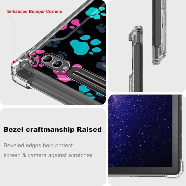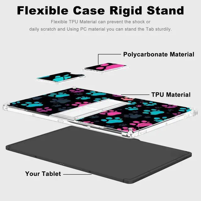 ^^ Premium Material: Our for samsung tab s9 plus case tablet hybrid case is well made of premium flexible TPU and plastic material, it has strong flexibility for you easy to install or take off the Transparent case. and well covers tablet's back to prevent it from scratch, fingerprint and break.