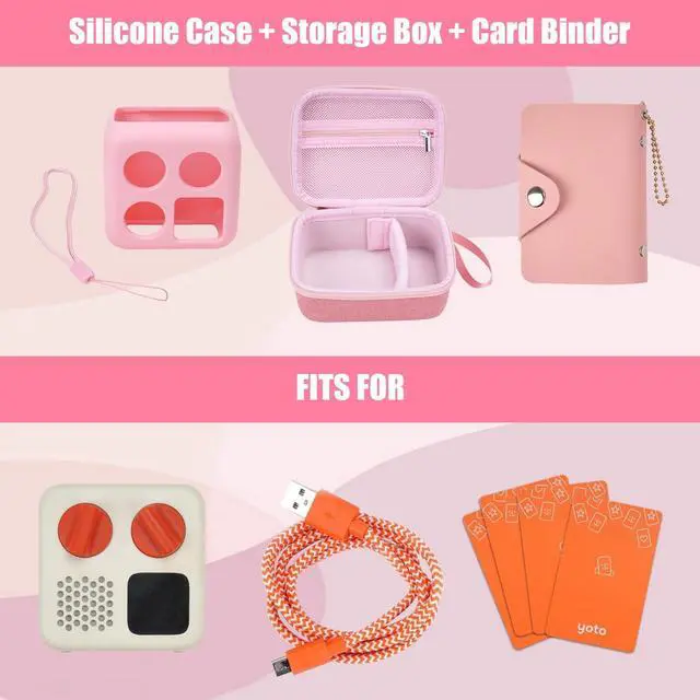 Unique DesignHard case and Thicken silicone case perfectly compatible with Yoto Mini Player. Make it easier and more comfortable for you to play. ^^ StyleThe silicone case is designed with a unicorn image, making your audio player more attractive and making it more personalized. ^^ ProtectionThe high-quality hard case and silicone cover can protect your kid's music player from scratches and bumps, allowing you to use it with confidence. ^^ PortableThe silicone case is designed with comfortable wrist rope for easy carrying when playing or traveling. This audiobook case comes with a card case that can holds up to 10 Yoto player cards.