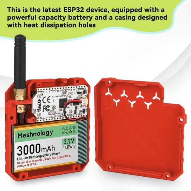 • Meshtastic CaseOur protective case is made of durable materials. The custom N33 case holds LoRa V3 ESP32 development board, 3000mAh battery and 915MHz antenna to protect your ESP32 LoRa V3 development board from dust, shock and various environmental factors. At the sam
