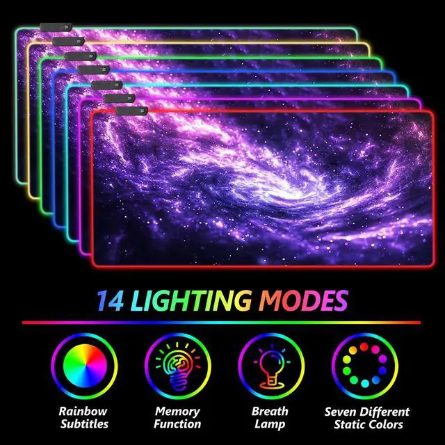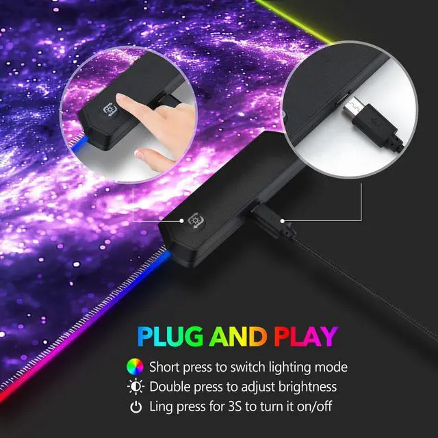 Included: 1 Large RGB Gaming Mouse Pad1 x free cup coaster1 x Data Line